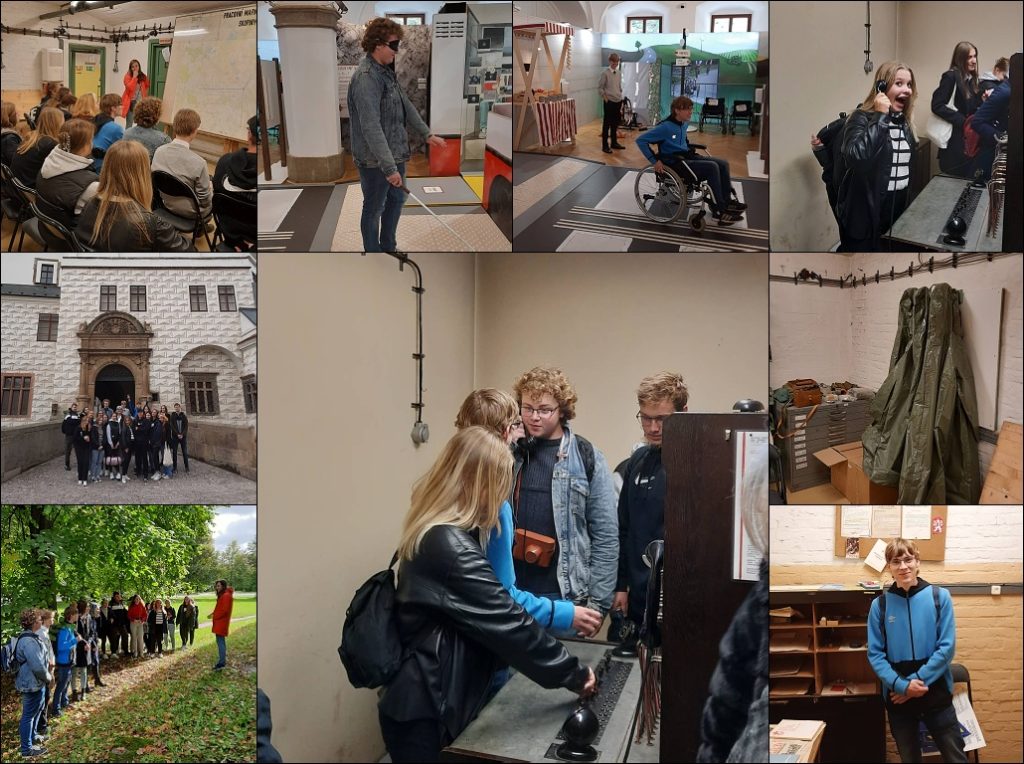 Dne 19.9. jsme vyrazili s panem učitelem Tomkem a paní učitelkou Hanzlovou do centra Pardubického kraje – do Pardubic. Nejprve jsme navštívili atomový kryt s původním autentickým vybavením. Vyzkoušeli jsme si práci telefonisty, manuální pohon čističky vzduchu i simulaci jaderného útoku imperialistů na Pardubice. Po velmi zajímavé prohlídce jsme se přesunuli na nádvoří pardubického zámku, kde nás pobavili velmi přítulní pávi. Následně jsme se zúčastnili expozice Lidé od vedle, kde jsme si mohli vyzkoušet život s tělesným postižením. Poté následoval rozchod po Pardubicích, který jsme všichni využili podle sebe. Někdo vymetal nákupní centra, jiný zase antikvariáty. Z Pardubic jsme si přivezli nejen zážitky, ale i věcné suvenýry. Někdo oblečení, jiný bustu významného diktátora.